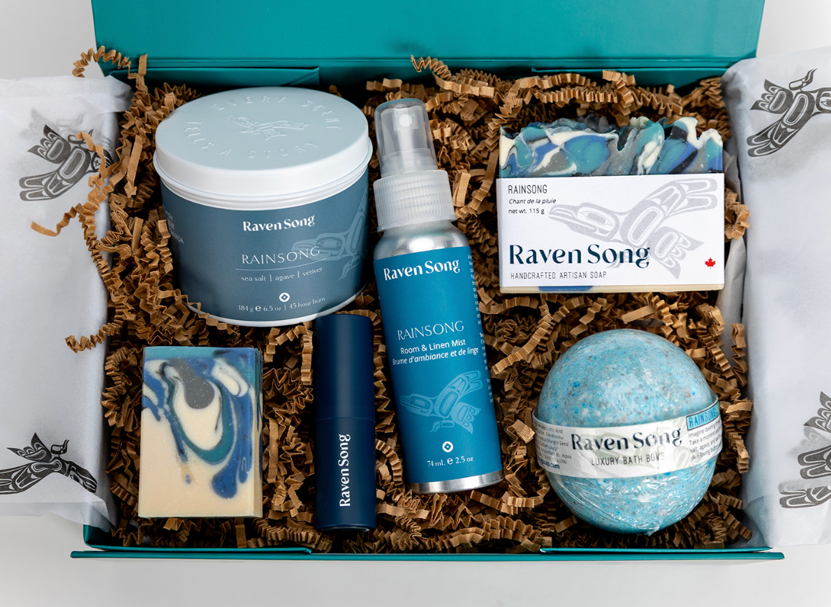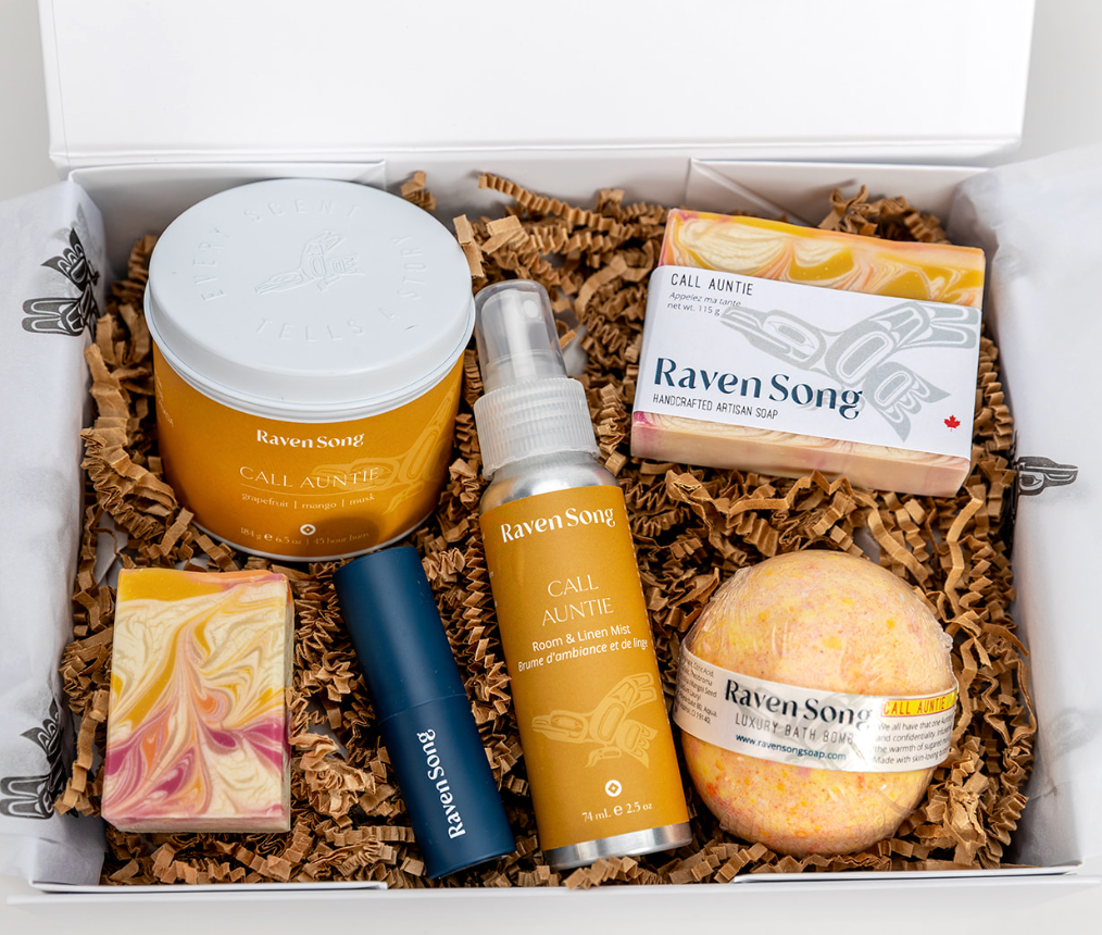 Inspired by Indigenous traditions of gathering, nourishment, and reciprocity. Each gift box features luxury soap, candle, and bath rituals paired with the Indigenous stories behind them. Perfect for corporate gifts to sharing with family and friends, these Canadian-made collections crafted on Vancouver Island make every gift a ritual for body & soul.