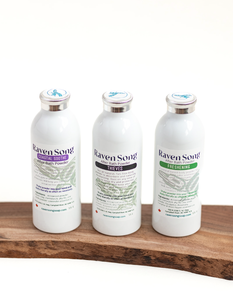 Introducing Ravensong Soap & Candle's latest innovation: British Columbia Lavender-infused Moisture Absorption Solution. Designed to shield your skin from chafing while providing a soothing touch, this product excels at keeping you feeling silky, dry, comfortable, and irritation free. For all skin types.