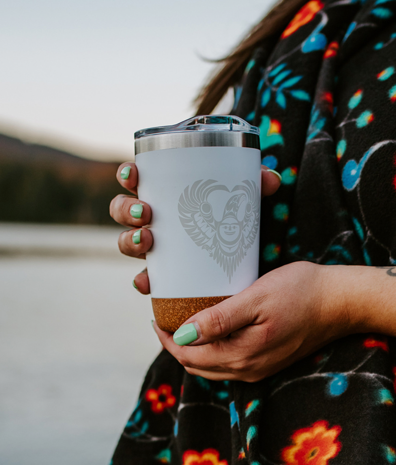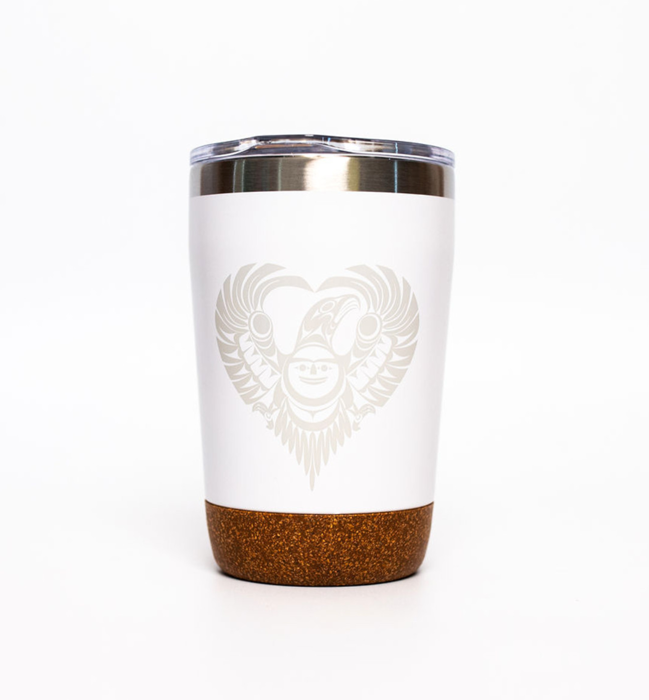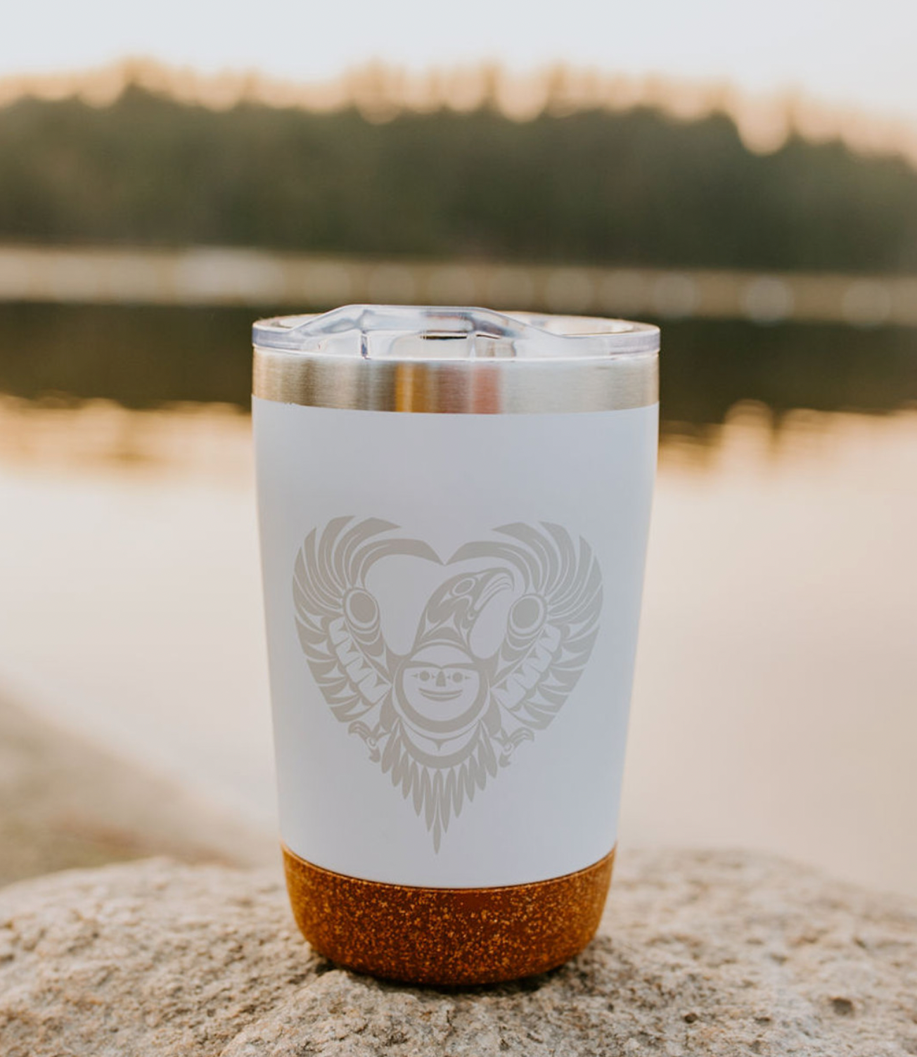 Versatile and designed to perform, Native Northwest Cork Base Travel Mugs feature a high-quality food-grade 304 stainless steel interior, a double wall with BPA-free push-on lid, and a stylish cork base that prevents scratching on different surfaces. These stylish travel mugs are great for temperature retention and can keep drinks both hot and cold for hours. Comes in a colour box with artist and product information.