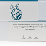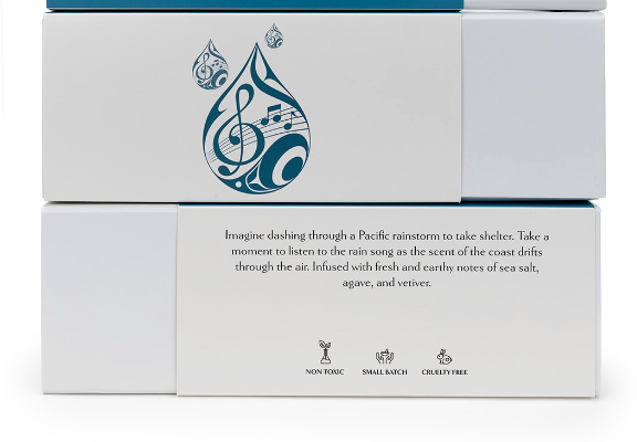 This story invites you to imagine dashing through a Pacific rainstorm to seek shelter. Take a moment and listen to the rain song as the scent of sea salt, agave, and earthy vetiver drifts through the air.