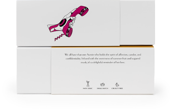 This story features that one Auntie who holds the spirit of affection, candor, and confidentiality. Infused with the sweetness of summer fruit and the warmth of sugared musk, it's a delightful reminder of her love.