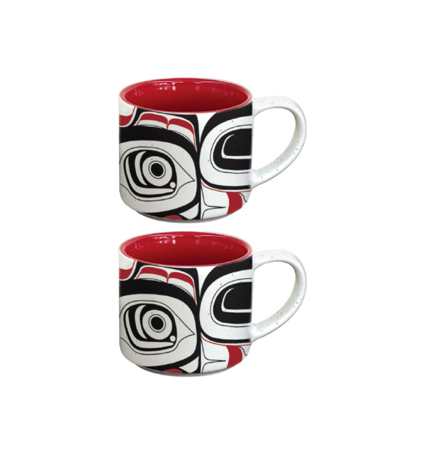 Inspire your mornings and sip away the late-day doldrums with our gorgeous 3 oz Ceramic Espresso Mugs featuring authentic Indigenous artwork. The speckled matte exterior and coloured glossy interior offer visual intrigue and a truly unique lounging experience.