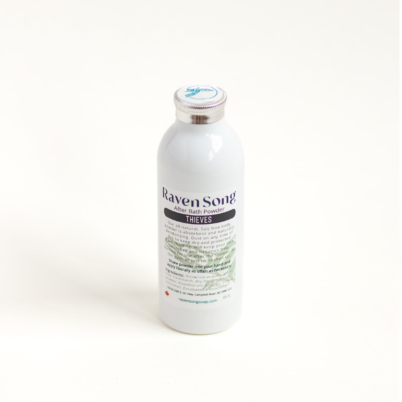 Introducing Ravensong Soap & Candle's latest innovation: Thieves Moisture Absorption Solution. Designed to shield your skin from chafing while providing a soothing touch, this product excels at keeping you feeling silky, dry, comfortable, and irritation free. For all skin types.
