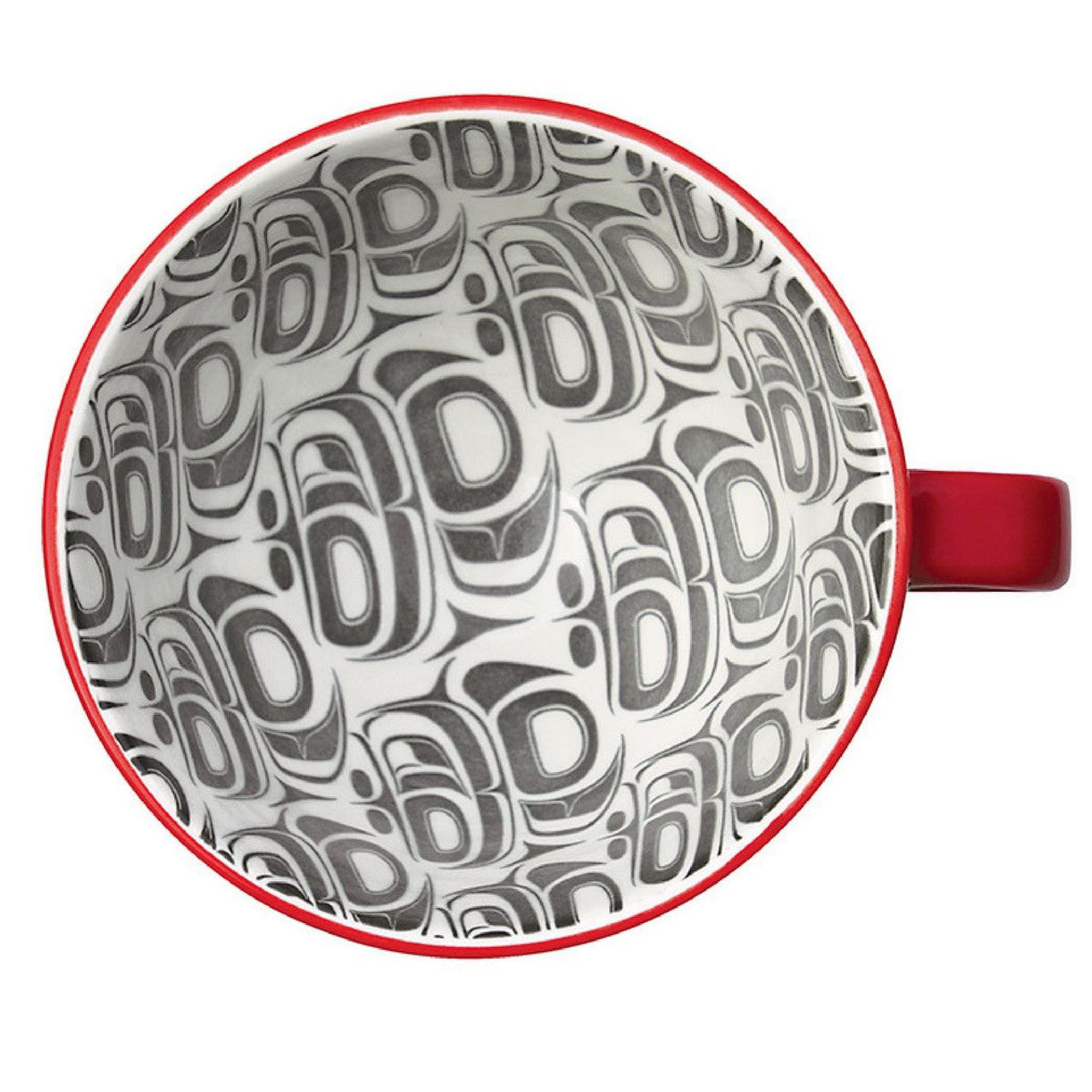 Enjoy a sip of tea or a cup of soup from our delightful 12 oz Art Mug. The textured surface adds tactile intrigue while the contemporary Indigenous design interior makes for a delightful surprise.